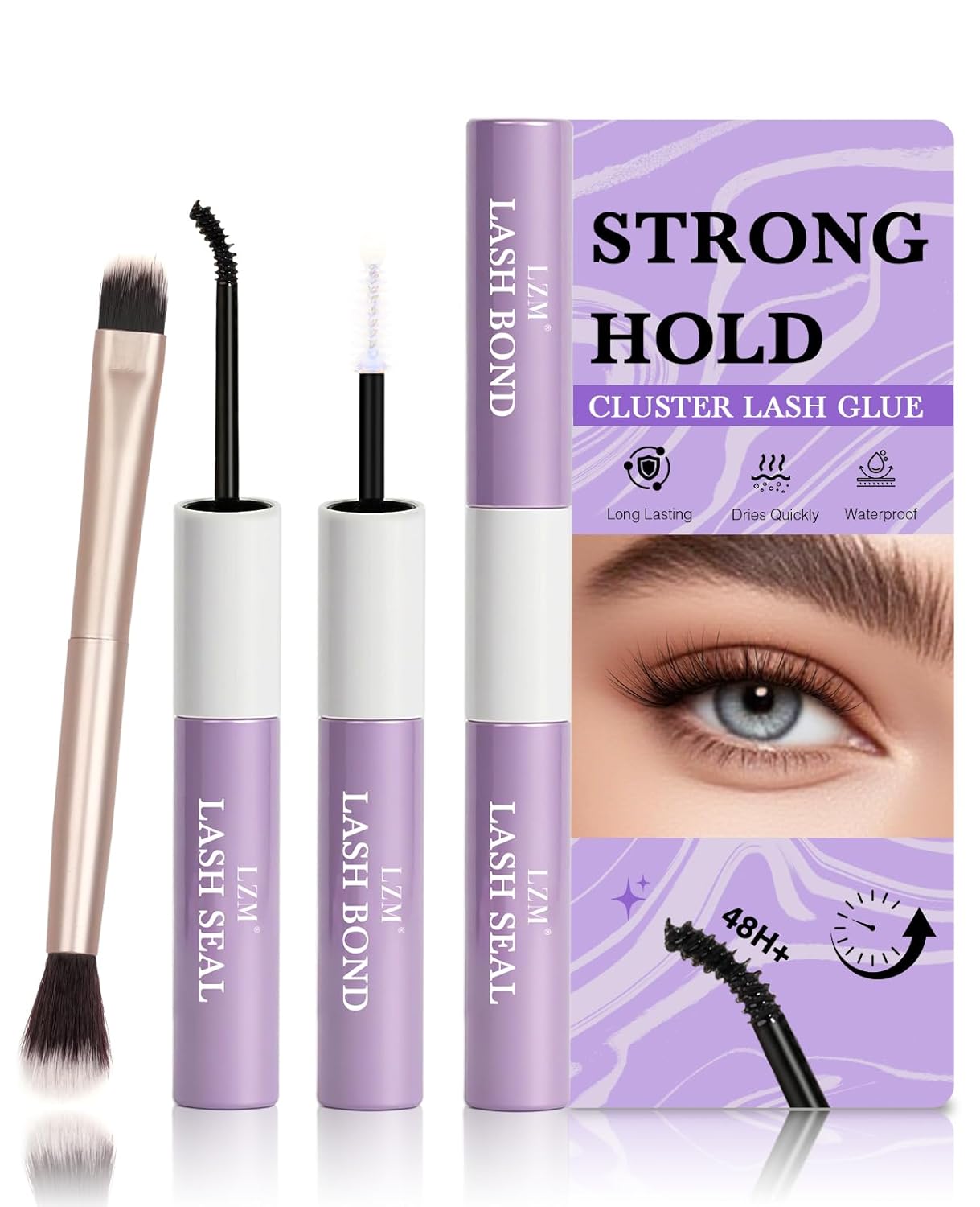 This lash glue came in a pretty little purple package.The 2-in-1 bond and seal made the whole process way easier, especially for someone like me who's still getting the hang of applying cluster lashes. The bond goes on smoothly and gives a good grip without feeling too sticky or messy.The hold is great my lashes stayed on all day without lifting, even through a bit of wind. The seal helps everything stay in place and remain precise.I also noticed it didn’t sting my eyes or cause any irritation, which is a huge plus.The tube is small but last longer than expected, and the wand makes application pretty straightforward. I’ve used it a few times now and it hasn’t dried out or gone clumpy.If you're into DIY lash extensions or just want something that works without spending a fortune, this is de